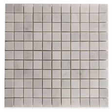 The Sino Carrara presents crisp white marble with subtle warm and cool striations rippling across its smooth, elegant surface.