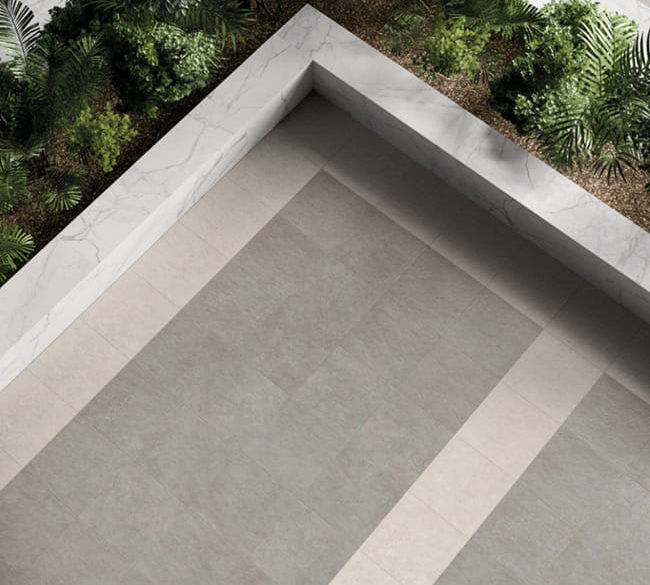 Avoid the headache of yearly sealing or staining of traditional landscaping materials with FRONTIER - 2CM. Resistant to salt, harsh weather, chemicals and scratches, this porcelain paver collection is a durable exterior solution that provides ease of mind. Expand your square footage with a patio, balcony, deck, swimming pool or gazebo that reflects your style and elegance. From marble, limestone and slate looks to woods and concretes, the uniform thickness and anti-slip surface make Frontier-2cm sophisticated enough to seamlessly blend your home’s interior charm with your outdoor living area.